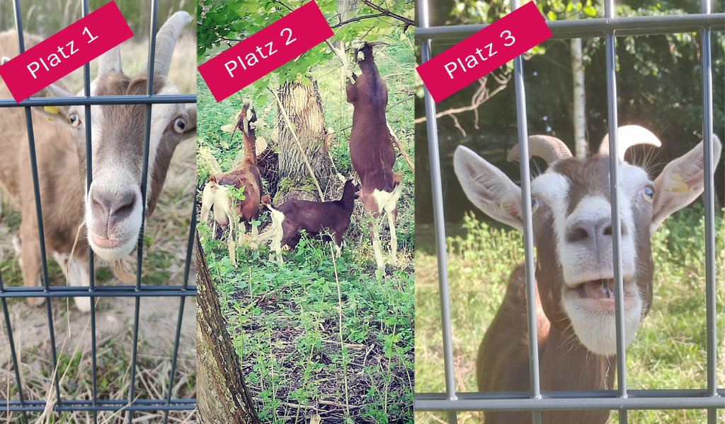 To była świetna zabawa! Piękne zdjęcia naszych kóz z półwyspu przy Berzdorfer See dotarły do nas! Dziękujemy wszystkim, którzy przyłączyli się do nas! Spośród nadesłanych zgłoszeń wyłoniliśmy zwycięzców, którzy otrzymają vouchery do naszej kawiarni w porcie. Miejsca: Michael Beier, Görlitz Sandra Klemme Stephan Klemme, Rothenburg Najlepsze życzenia i smacznego!