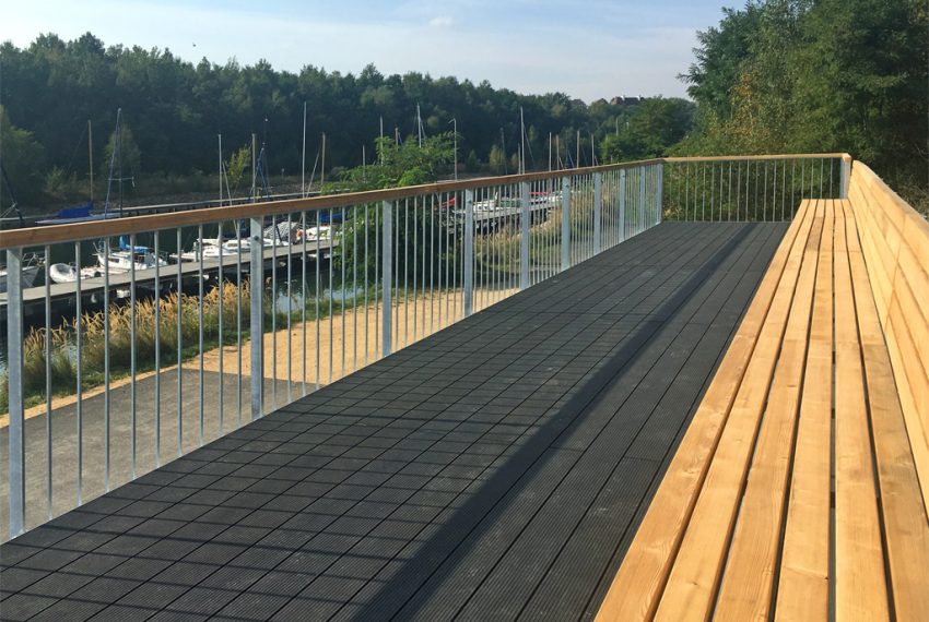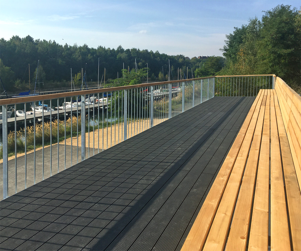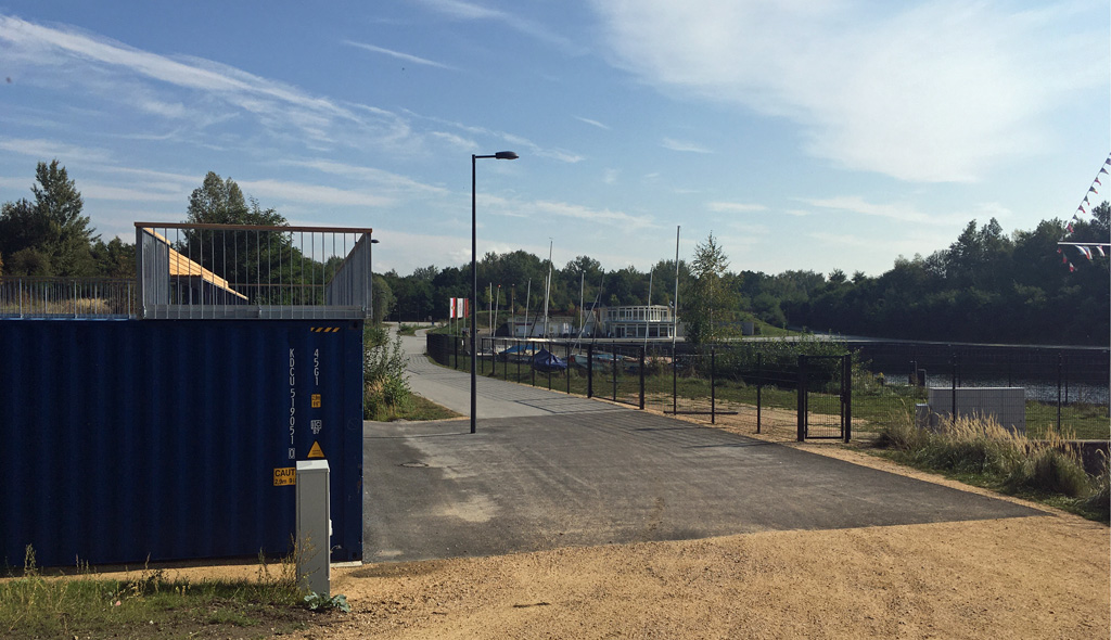 Am Hafen gibt es einen neuen Anlaufpunkt für kleine Zwischenstopps bei Radtour oder Spaziergang. Auf den Dächern unserer blauen Lagercontainer ist die Aussichtsterrasse fertig. Von dort oben gibt es einen schönen Blick übers Hafenbecken mit den Segelbooten auf der einen Seite und dem Hafengebäude mit Café auf der anderen. Eine zwölf Meter lange Bank vervollständigt den Platz zur Rast. Der Zugang erfolgt vom oberen Rundweg aus und hat barrierearm eine Rampe, sodass jeder den Aussichtspunkt nutzen kann.