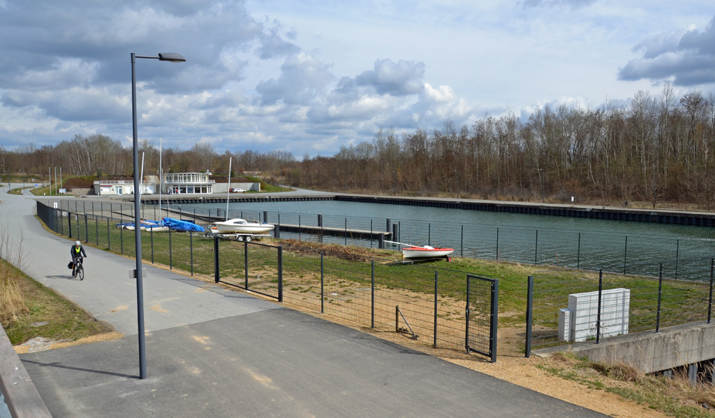 A po przeciwnej stronie kawiarni, na wodzie, sezon letni rozwija się drobnymi kroczkami. Pierwsze żaglówki są już na pomostach. Miejsce do cumowania pontonów jest już całkowicie wykończone i oferuje mnóstwo miejsca dla wszystkich tych mniejszych żaglówek, które nie będą stale wodowane.