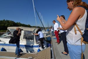Seltener Besuch am Berzdorfer See: Am 24. Juli war Sachsens Minister für Wirtschaft, Arbeit und Verkehr, Martin Dulig, mit großem Tross unterwegs. Landrat, Oberbürgermeister, Landtagsabgeordnete, Presse und etliche weitere Vertreter begleiteten ihn. Auf dem Weg per Fahrrad vom Nordstrand ließ er sich am Hafen Görlitz von KommWohnen-Geschäftsführer Arne Myckert die Zukunftspläne für das Areal erklären. Dann ging es per Boot weiter zur Blauen Lagune und der Insel der Sinne.