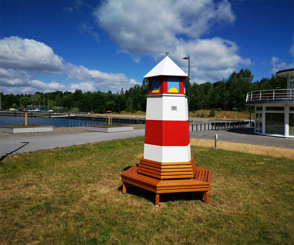 Der Hafen Görlitz hat jetzt einen Leuchtturm. Genauer gesagt, einen kleinen Bruder direkt neben dem Hafencafé, an dem man sitzend eine Pause machen kann. Gebaut haben ihn für uns Mitarbeiter der bao GmbH, von denen auch schon die Bänke für den Strand stammen. Das Jobcenter des Landkreises Görlitz fördert diese Maßnahme.