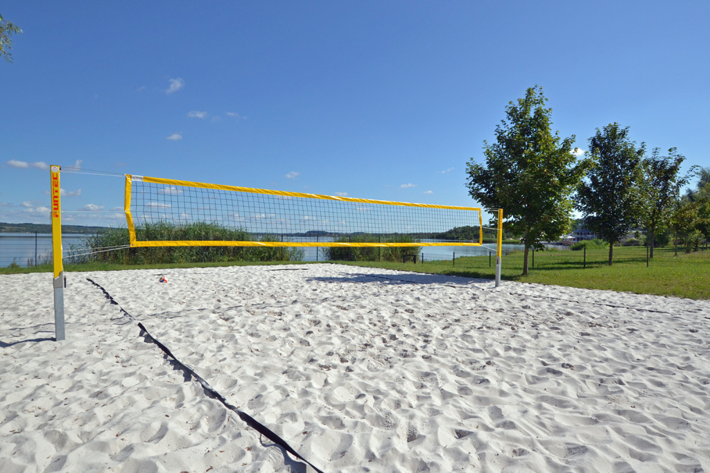 Der Sommer dreht dieser Tage nochmal richtig auf. Wie wäre es mit einer Sportart, die dann wieder monatelang nicht richtig funktioniert? Beachvolleyball! Unsere beiden Plätze am KommWohnen-Strand in Hagenwerder stehen bereit. Feiner weicher Sand und eine professionelle Netzanlage laden zum Spiel im Freundeskreis oder als Abwechslung im Vereinssport ein. Und das Beste: Es darf kostenlos gespielt werden. Nötig ist nur eine Anmeldung im Hafencafé, damit der Platz (oder beide Plätze) zur gewünschten Zeit frei ist. Vereine können sich regelmäßige Spielzeiten reservieren. Ein Schaukasten direkt an dem umzäunten Areal informiert bei zahlreichen Buchungen über die Belegung.