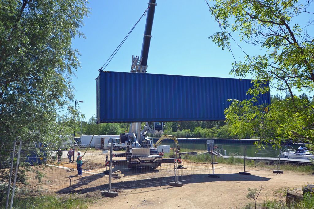 In ein paar Wochen können die Wassersportler die Container dann nutzen. Dann soll auch die Aussichtsplattform auf den Dächern der Container fertig sein.