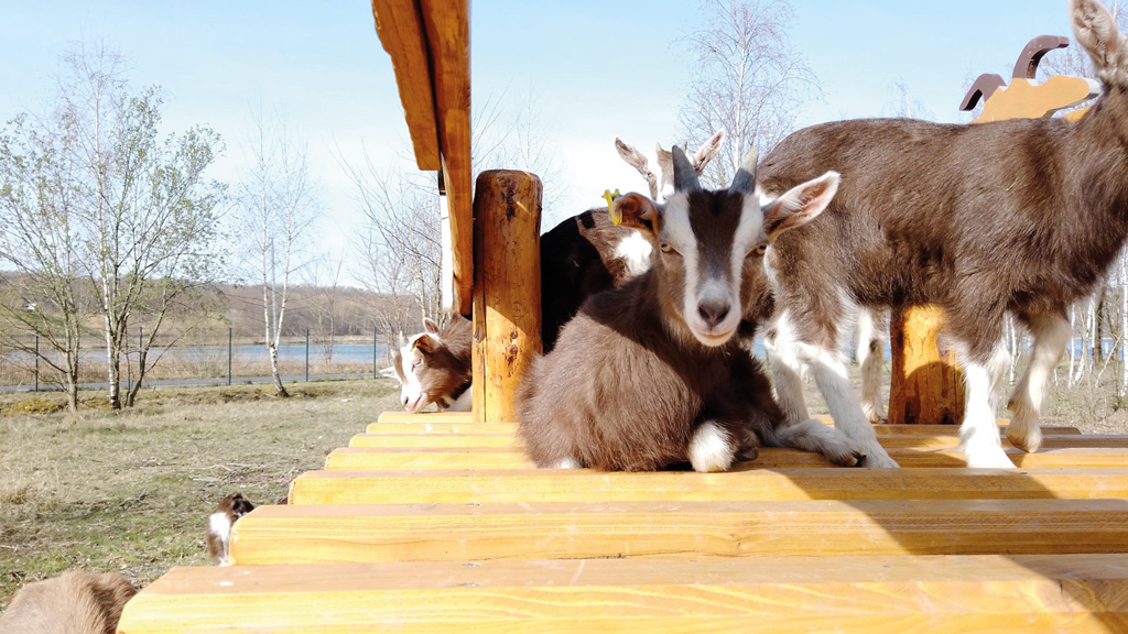 You can get to know this goats from Thuringia face-to-face at the Görlitz Nature Conservation Animal Park or observe them on a walk along the Berzdorf lake as they work to protect species near the harbour.